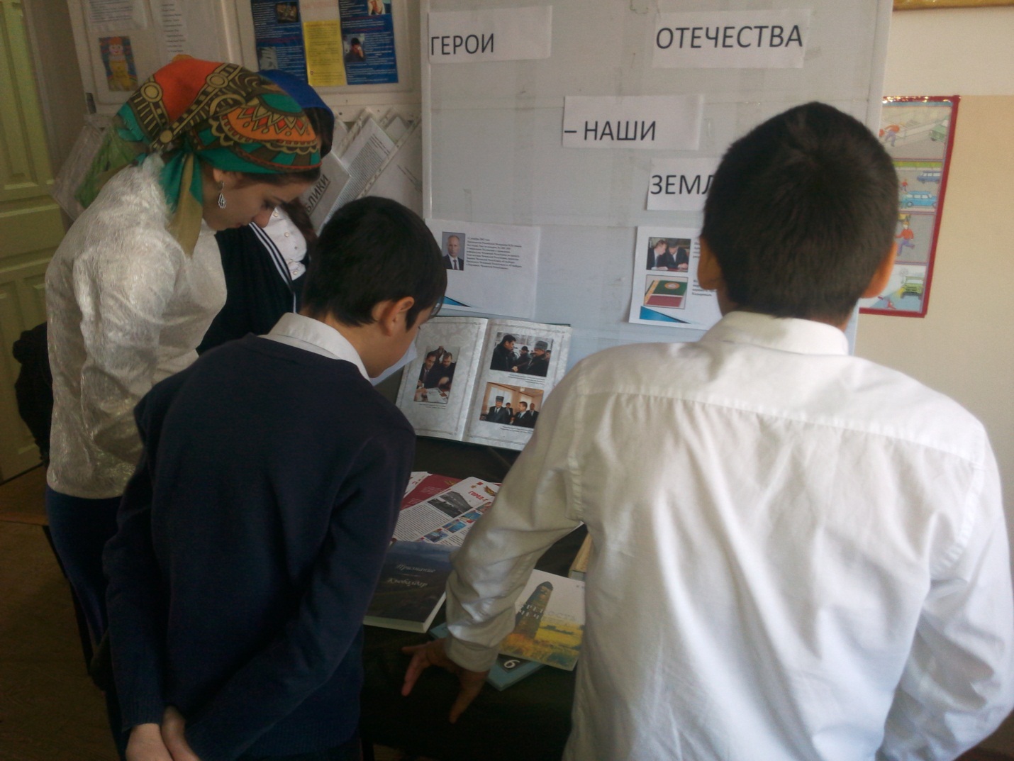 В целях патриотического воспитания учащихся, развития интереса к истории России и сохранения памяти о погибших и ныне живущих Героях России 9 декабря – День Героев Отечества учрежден памятной датой России ФЗ от 28.02.2007 года. В рамках данного праздника в МБОУ «Червленно-Узловская СОШ» были проведены следующие мероприятия:Учителя истории и обществознания провели уроки мужества, посвященные Дню Героев Отечества. На уроках обучающимся рассказали о героях, которые проявили мужество и отвагу и отдали жизнь за спасения нашей земли от врагов. Библиотекарь Абдулаева Р.Э. подготовила книжную выставку «Герои Отечества – наши земляки» среди учащихся 5-11 классов. Она рассказала, что в разные периоды времени, у нас было много героев России: Хампаши Нурадилов; Мовлит Висаитов- герой ВОВ, о которых мы всегда должны помнить. Члены ЕДЮО «Юные Кадыровцы» провели акцию «День героев Отечества». Цель акции: познакомить учащихся школы с героями России и Чечни. На переменах ребята раздавали буклеты, которые подготовили сами члены отряда «Юные Кадыровцы».