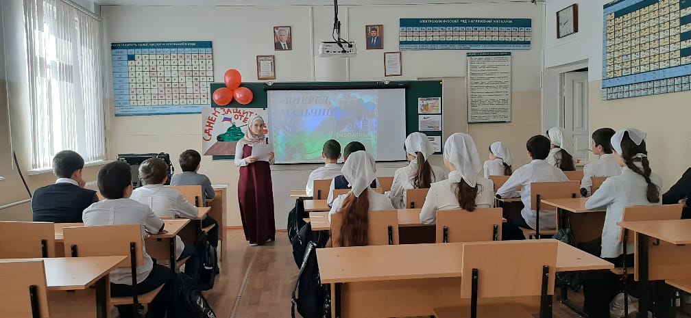 5 февраля в 8-11 классах были проведены Уроки Мужества, посвященные Дню защитника Отечества на примерах жизни и деятельности Первого Президента, Героя России А.А.Кадырова.