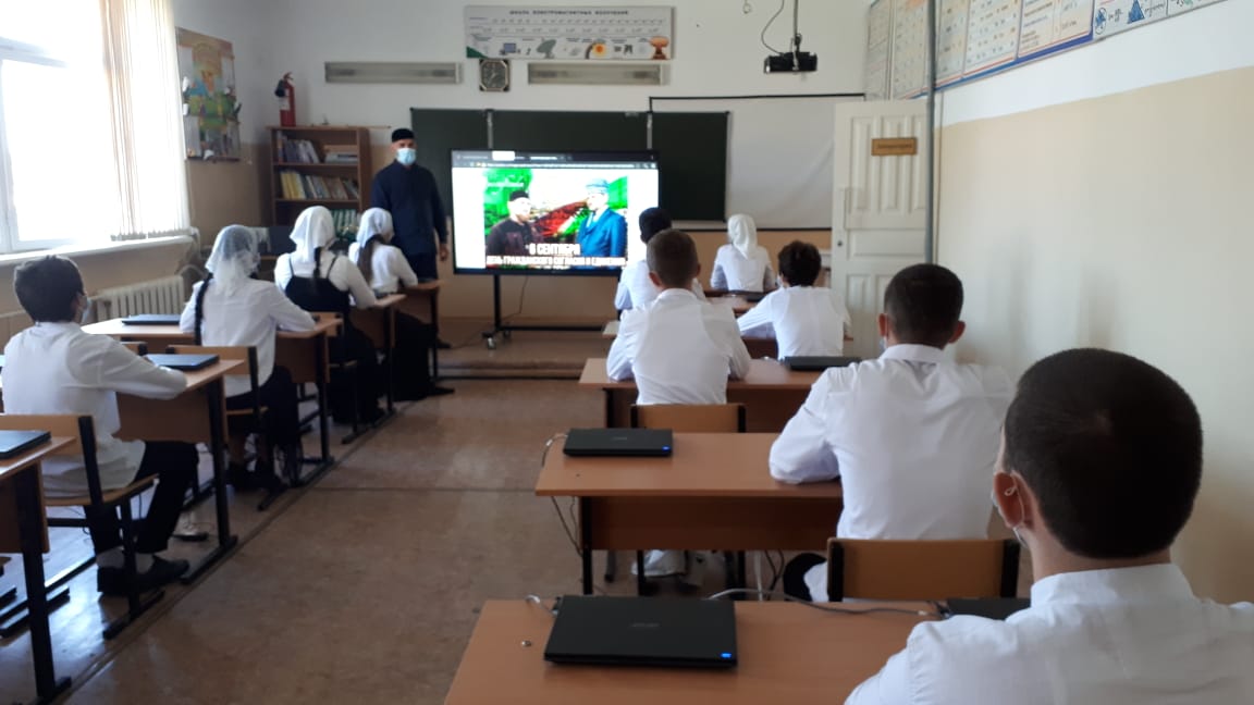 Классными руководителями 2-11 классов проведены классные часы и беседы «Вместе мы едины», «Мир и согласие», «6 сентября-День Чеченской Республики».В ходе классных часов дети прочитали стихотворения посвященные Ахмат-Хаджи Кадырову и Рамзану Ахматовичу, говорили о взаимоуважении друг к другу, несмотря на то, что все мы очень разные.