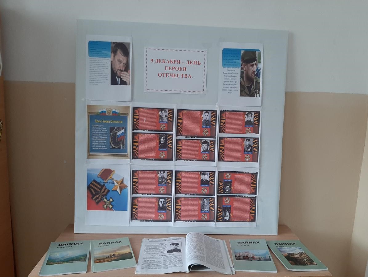 Библиотекарь Абдулаева Р.Э. подготовила книжную выставку «9 декабря-День героев Отечества».