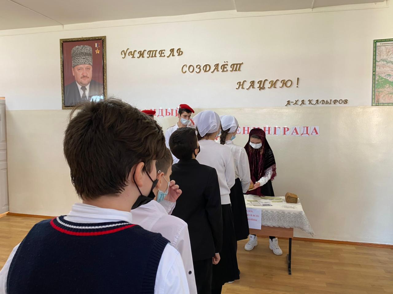 25 января прошла акция «Блокадный Хлеб Ленинграда», приуроченная к годовщине снятия блокады Ленинграда. Организаторами которой стали учащиеся детской организации «Юнармия» под руководством педагога-организатора Абдулаевой Э.М.В ходе акции ребята кратко рассказали о жизни людей в годы войны, о том как работали хлебозаводы, из чего пекли хлеб, и почему его называют «блокадным».В рамках акции детям были розданы хлебные карточки, утеря которой была равносильно смерти и 125 грамм хлеба.