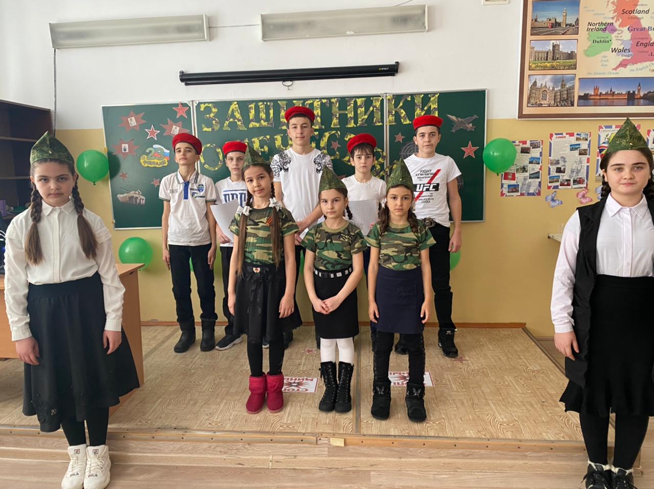 Учителем истории Абдулаевой Х.М. в 9-11 классах были проведены Уроки Мужества, посвященные Дню защитника Отечества на примерах жизни и деятельности Первого Президента, Героя России А.А.Кадырова.
