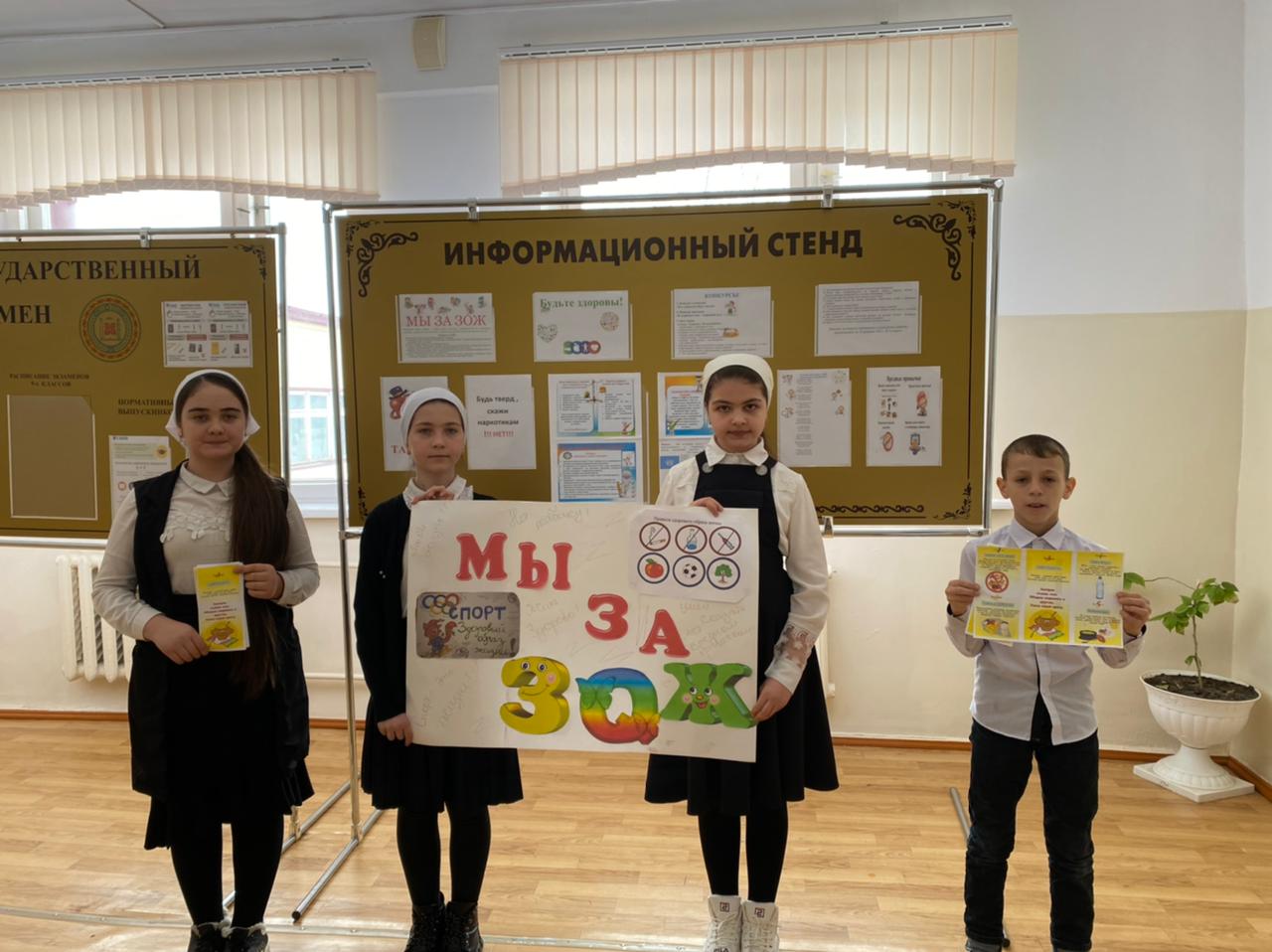 С целью пропаганды здорового образа жизни, расширение и систематизация знаний учащихся о сохранении здоровья 17 февраля ЧРОО «Юные Кадыровцы» проведена внутришкольная акция под девизом «Я выбираю ЗОЖ». В ходе акции, учащиеся в стихотворной форме призывали детей вести ЗОЖ. Ребята раздали буклеты с рекомендациями по соблюдению режима дня, а также о вредной и полезной пище, правильном питании. Учащиеся узнали, какими питательными веществами богаты продукты, которые мы чаще всего употребляем в пищу, какие бывают витамины, для чего нужен каждый из них и в каких овощах и фруктах они содержатся
