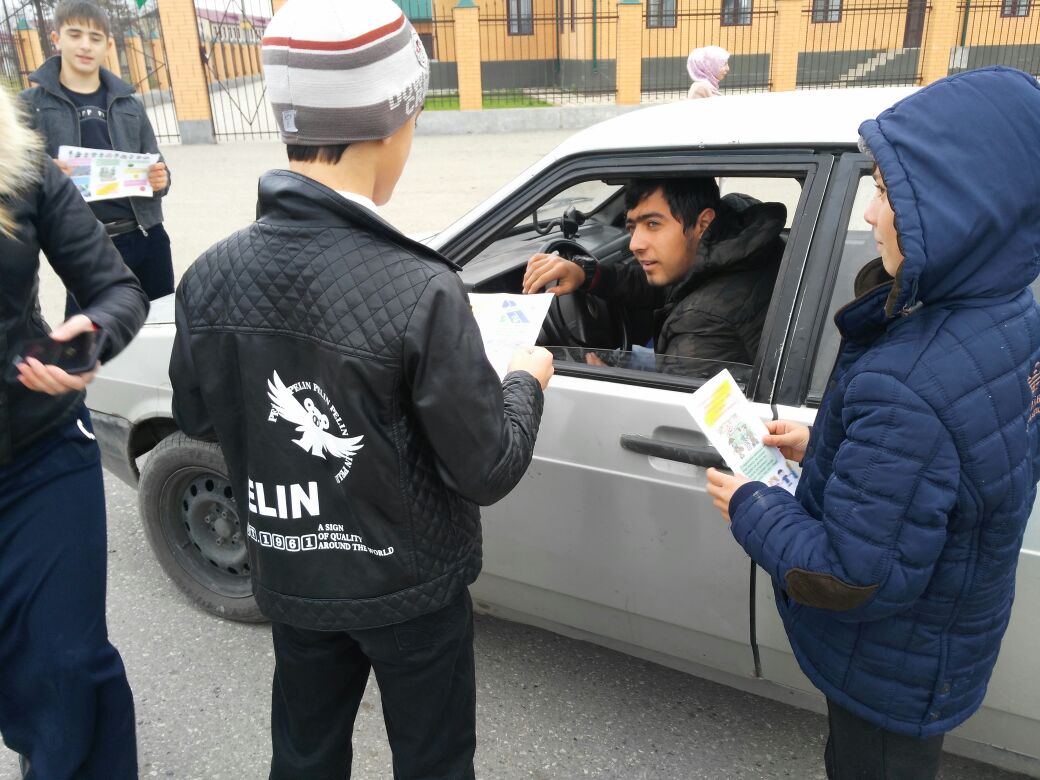 При проведении акции учащиеся 7 класса под руководством организатора ДТ Арсалхановой Л.М. вышли на проезжую часть дороги вручали водителям листовки «Детям- безопасные дороги!», «Водитель-остановись!» призывали водителей быть дисциплинированными, соблюдать правила дорожного движения. Водители с пониманием отнеслись к проводимому мероприятию и в свою очередь также советовали детям быть внимательнее на дороге.